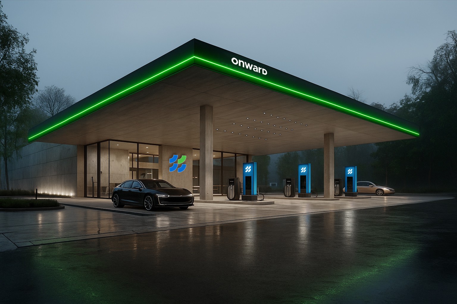 A new gas station franchise built around modern energy delivery. The identity brings together a cost-effective franchise model, accessible energy solutions, and a forward-looking visual language.