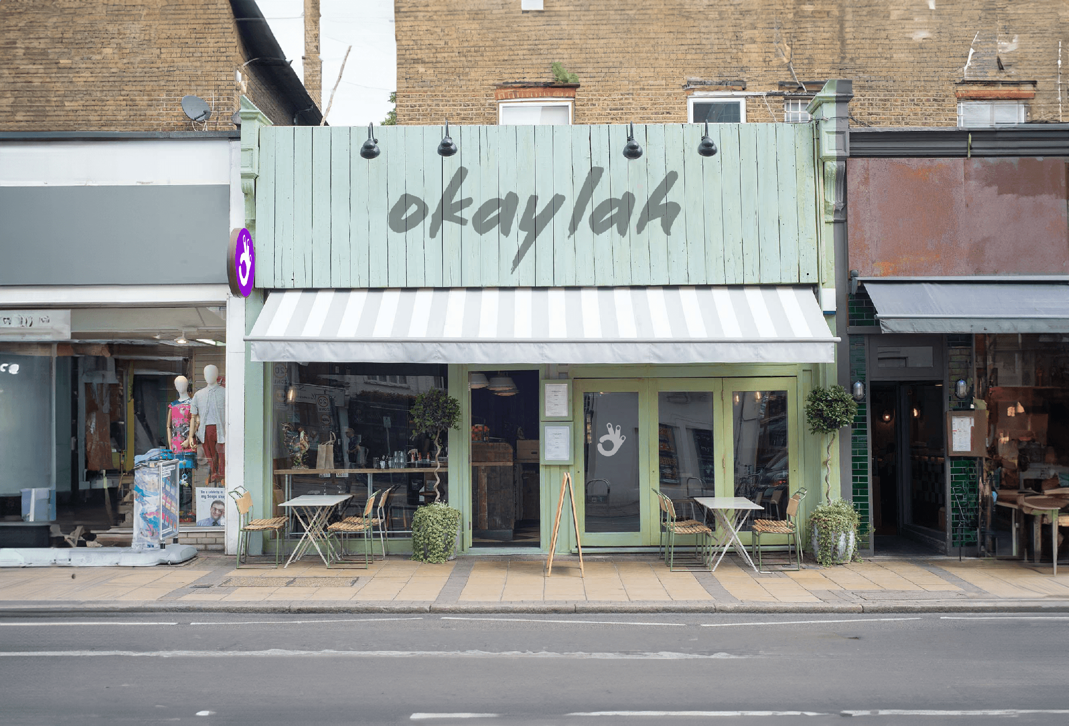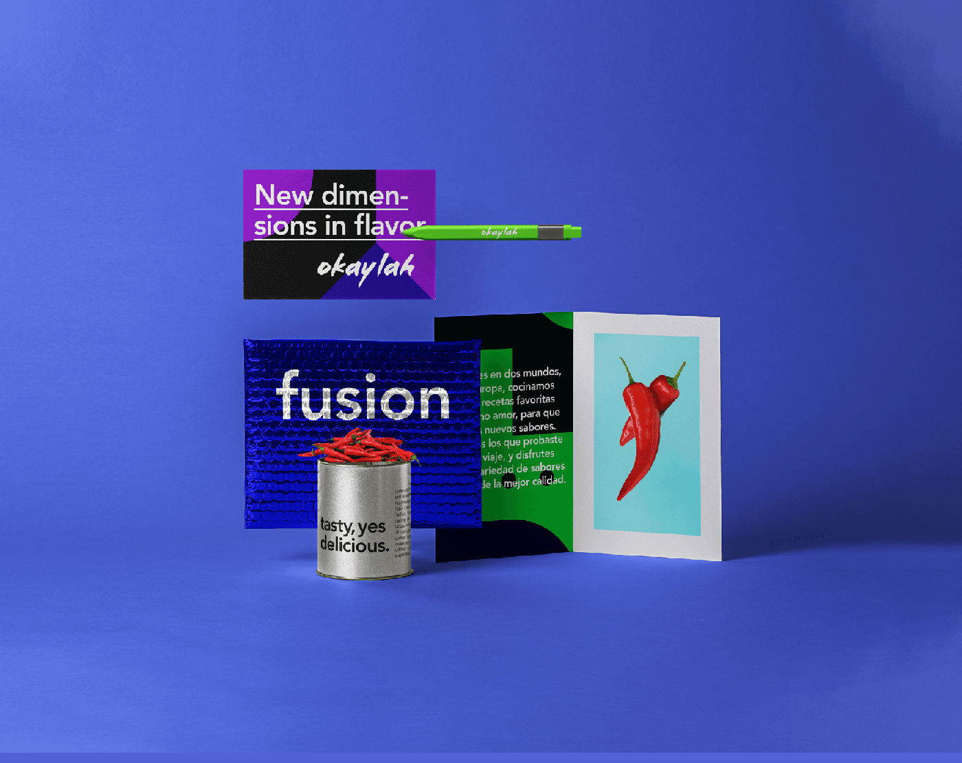 We developed an identity that covers a broad range of Asian cultures, while avoiding cliches. In Hong Kong and Singapore, Okay Lah is a common expression. Taking the literal route, we developed a modern mark that uses the okay symbol indicated with the hand gesture. A saturated color palette implies the food is spicy, and the type is evocative of Asian calligraphy, without resorting to cliches.